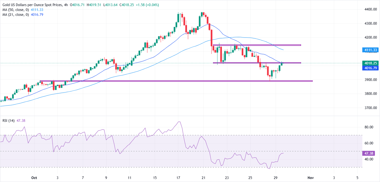 Gold (XAU/USD) stages a modest recovery on Wednesday, after briefly slipping to a three-week low near $3,886 on Tuesday. The rebound comes as traders cautiously reposition ahead of the Federal Reserve’s (Fed) interest rate decision at 18:00 GMT. At the time of writing, XAU/USD is trading around $3,995, up nearly 1.0%, snapping a three-day losing streak as investors rotate back into safe-haven assets.