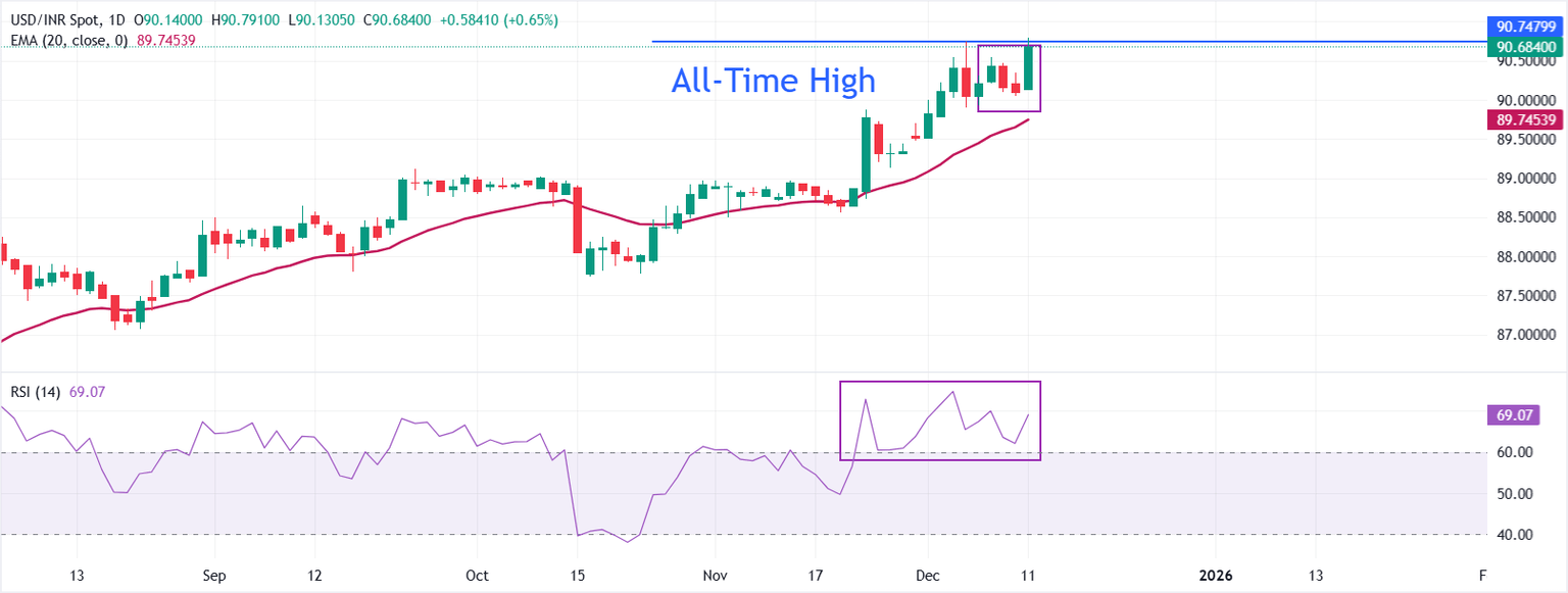 Technical Analysis: USD/INR revisits all-time high near 90.70
