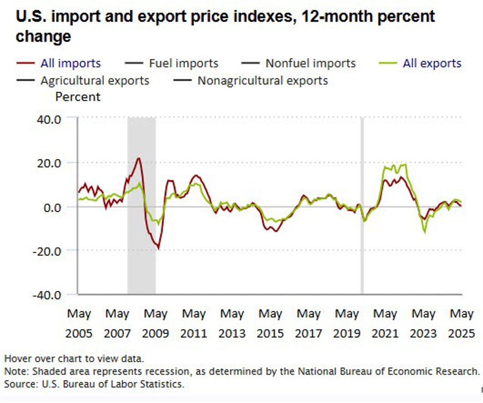 The price of imports (and exports as well are not racing which is good for inflation.