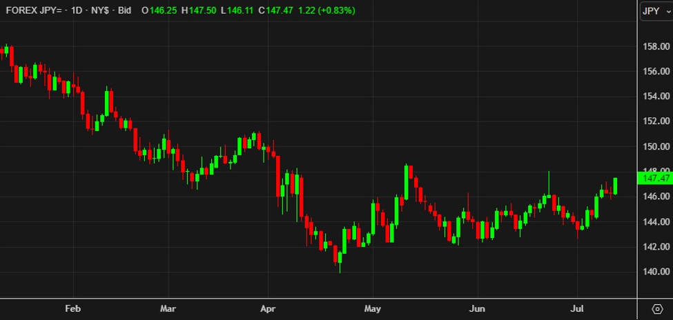 USD/JPY is near the best levels of the day, up 120 pips to 147.47.